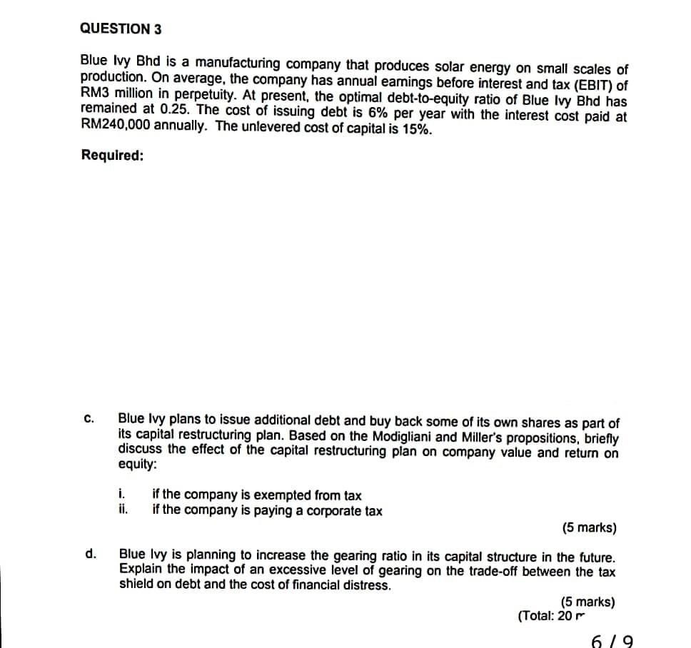 Blue Ivy Bhd Is A Manufacturing Company That Produces Chegg Com