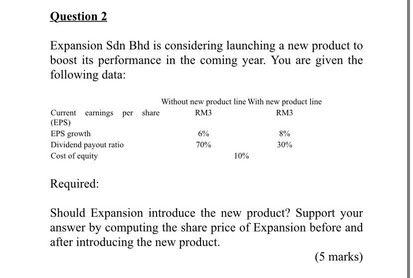 Solved Question 2 Expansion Sdn Bhd Is Considering Launching Chegg Com