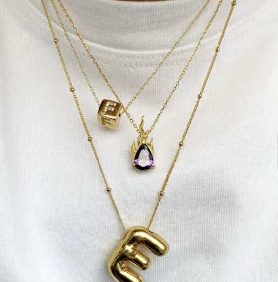 Rio Initial Letter Pendant Necklace Chunky Alphabet Etsy