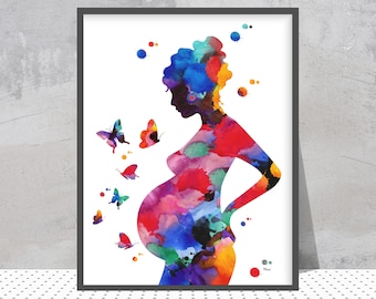 Pregnancy Art Print Woman With Child Watercolor Pregnant Woman Etsy